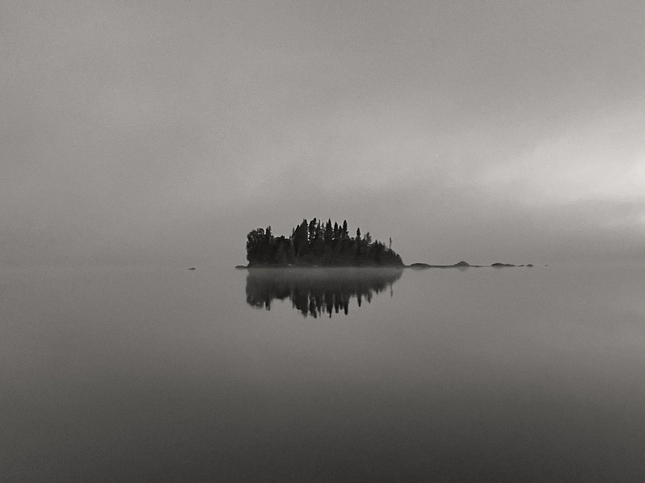 A tranquil island emerges through the morning fog, suspended in stillness over a quiet lake. This print was featured in a Friends of the Boundary Waters Canoe Area email the day after the presidential election, November 5, 2024. 20% of the proceeds of this print will be donated back to that organization for the conservation of the BWCA.